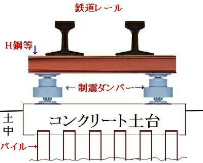 画像を載せておいたが、鉄道のレールとコンクリート製の枕木代わりのH鋼等の鋼製の枕木をボルト等で固定し、さらに枕木と制震ダンパーを固定、制震ダンパーをコンクリート土台にアンカーボルトで固定。土台は地中深く埋め込んだパイルで、今回の東日本大震災のマグニチュードにも耐えることがきる強度を持たせて固定すれば、すべてを強固な状態で一体化できる。